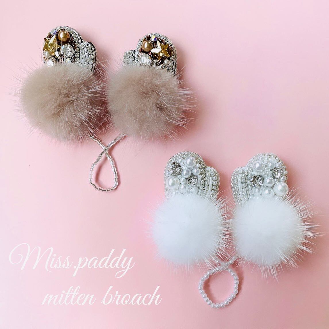 スワロフスキーでてきた、ミトンブローチ。